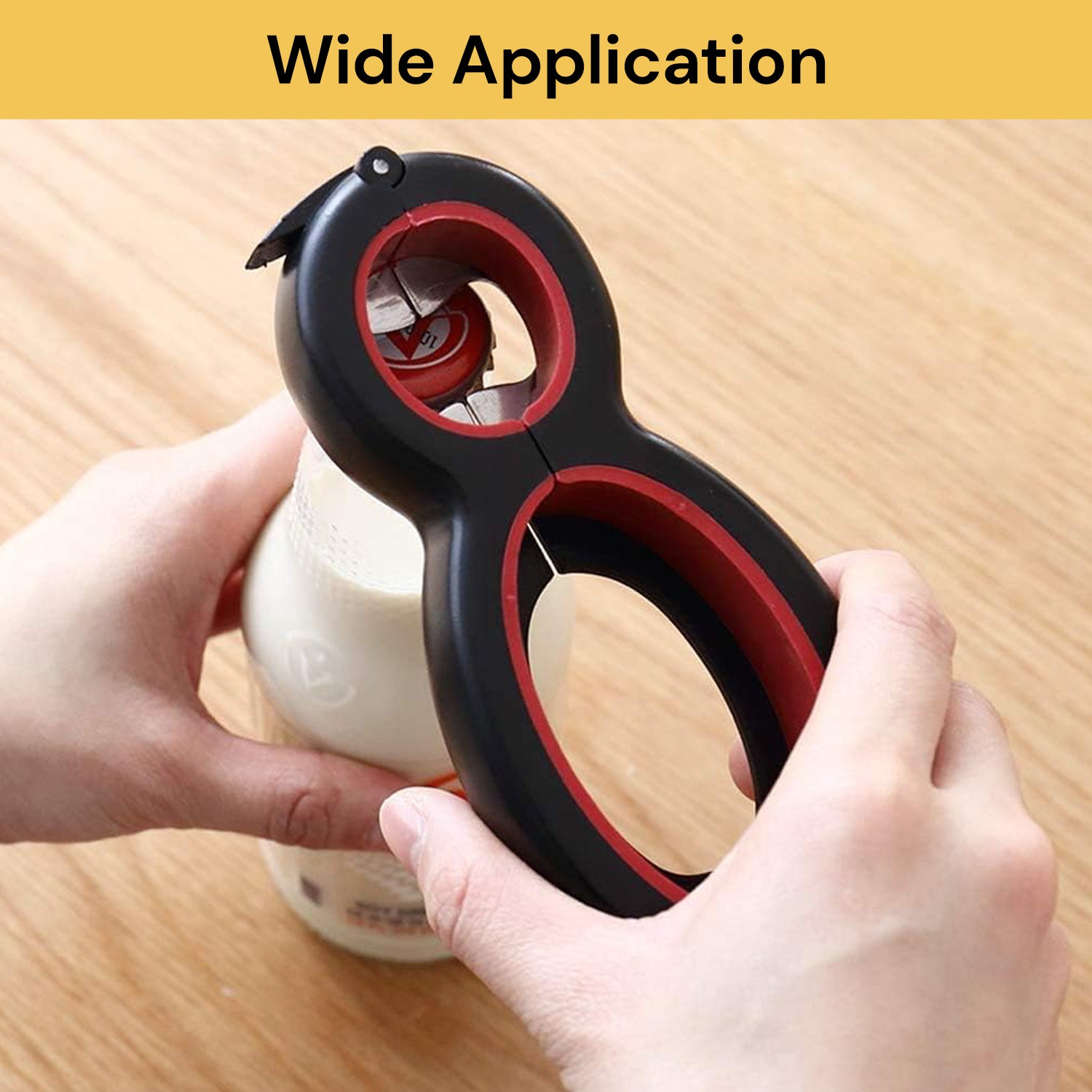 Efficient 6-In-1: 6 in 1 Multi Opener can opens six diferent types of seals/lids: sealed bags, safety seals, pull tabs, bottle caps, bottle tops, jar lids. Stainless steel blade durable to use and safe.