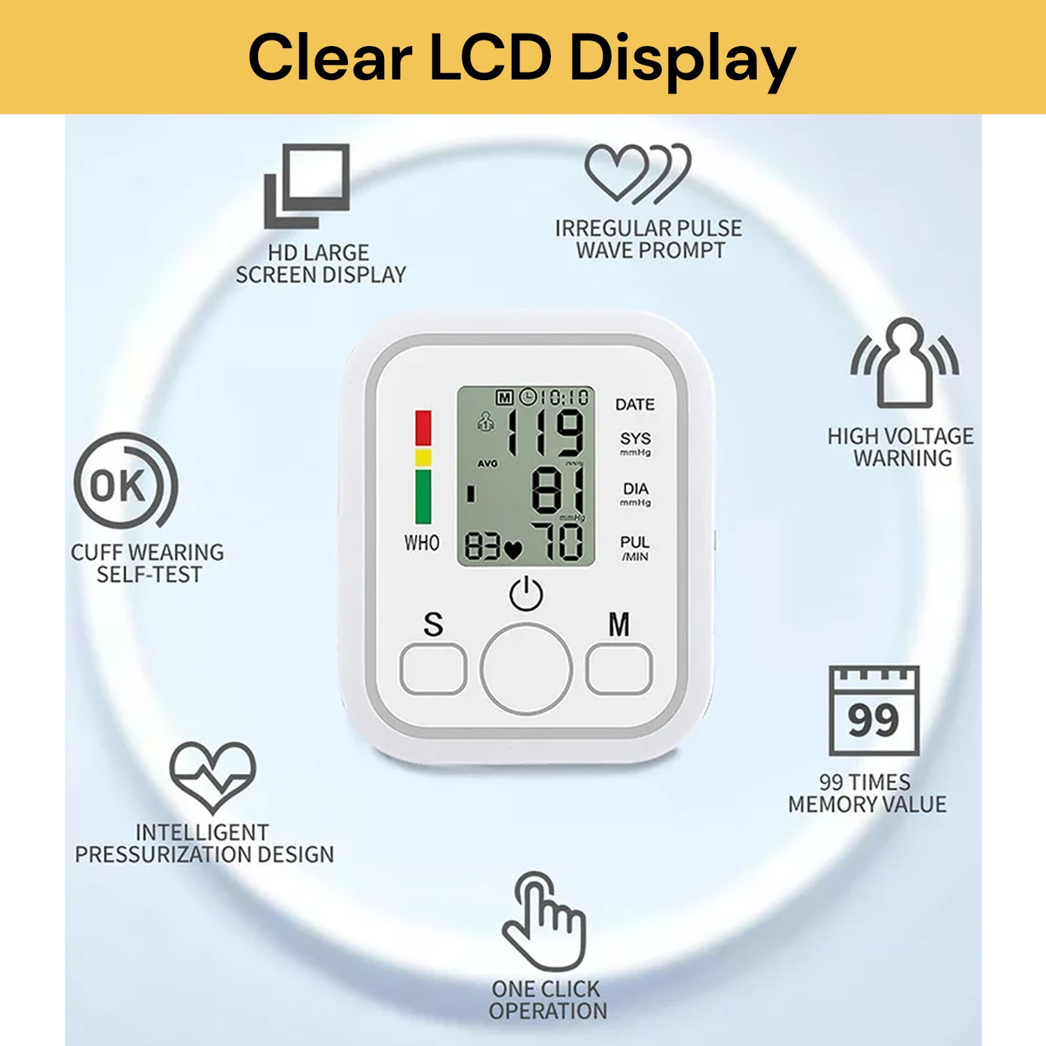 Clear LCD Display: The blood pressure support machine displays the following measurements: systolic pressure, diastolic pressure and pulse rate. It will self shut down without any operation for 30 seconds.