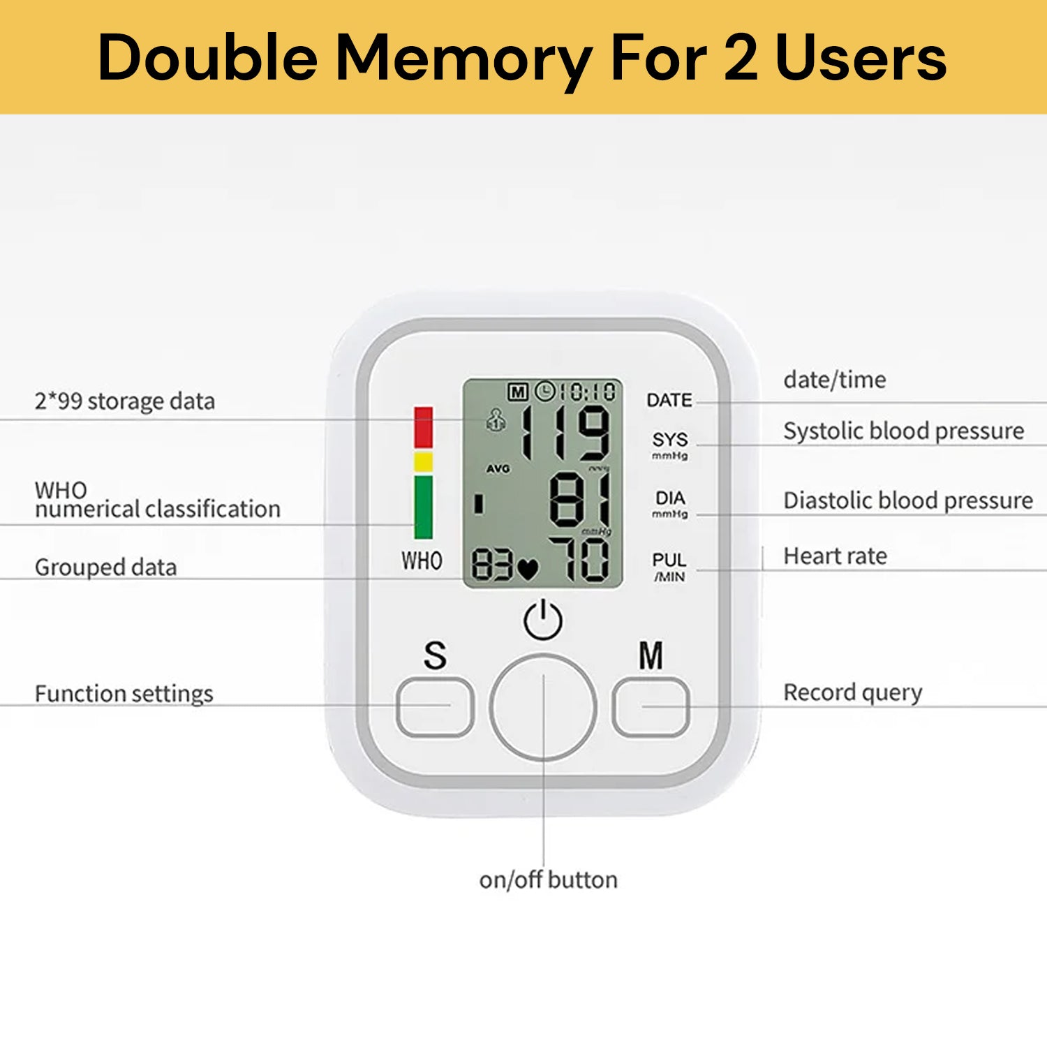 Dual User Memory Blood-Pressure Machine: The blood-pressure monitors support A/B dual user group modes. The digital blood pressure machine allows you and a partner or family member to track measurements separately.