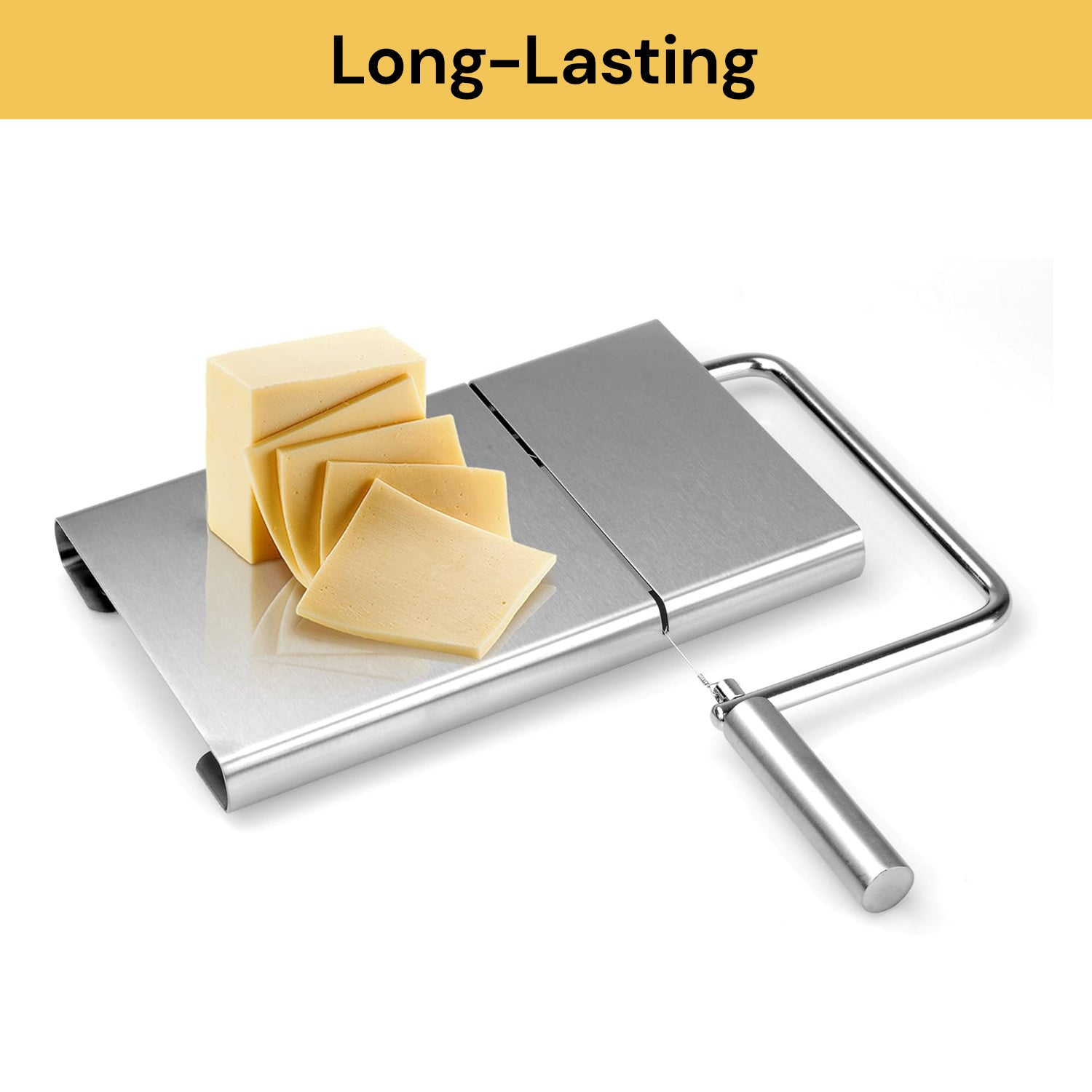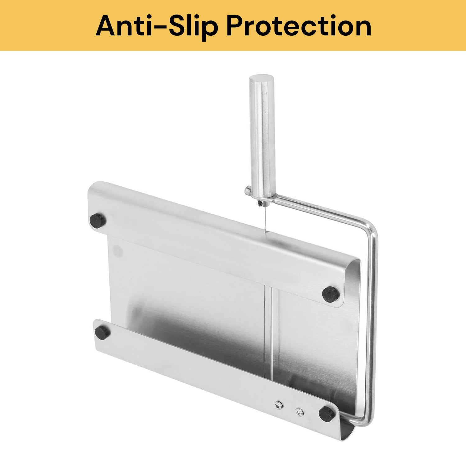 High Quality Material: This Cheese Slicer with Wire is made of high quality 304 stainless steel which is safe and non-toxic, more secure to use. stand rubber feet holding the cutter in place, while protecting your countertop from potential damage.