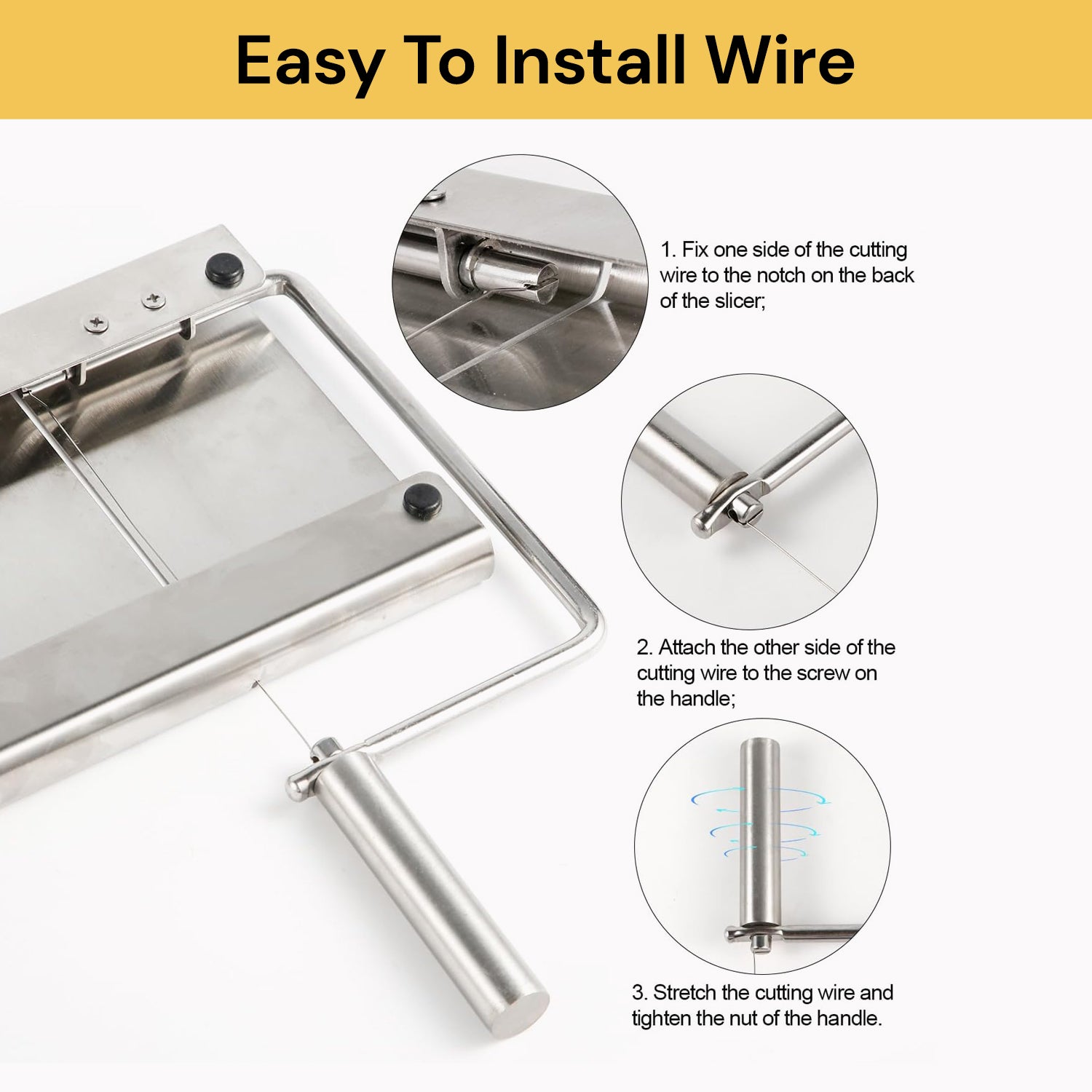 Easy Installation: This block cheese slicer cheese cutter is special designed for soft cheese, 1 pre-installed wire & 5 extra replacement wire which are durable, easy to install, and easy to cut beautiful and neat slices. So the use of this cheese slicing machine is more long -lasting.