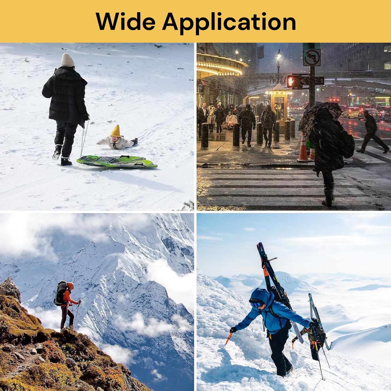Durable TPE Material: Our Ice Grippers Traction Cleats are made of quality TPE material that resists tears with high-elasticity. And there are 5 non-slip studs on each crampon, which make Snow Shoe Spikes stable, grip and resistant. The universal non-slip gripper spikes can stretch to the maximum and meets the requirements of various adult men and women's skates and boots.