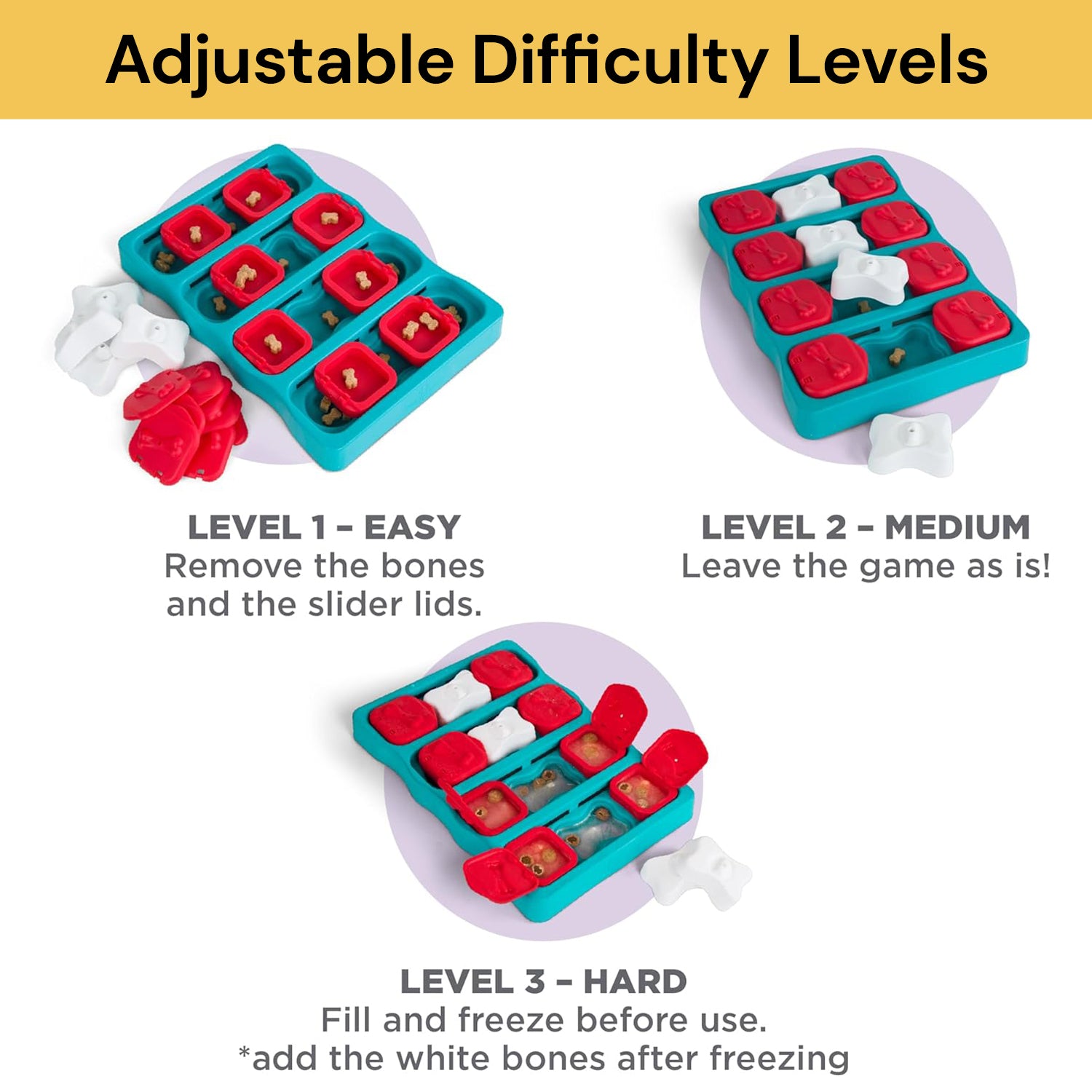 Interactive Toy: As one of our most popular intermediate level 2 designs, the Dog Brick interactive puzzle includes additional obstacles and combinations of steps that will keep your dog focused and mentally-stimulated as they search and sniff out the tasty treats!