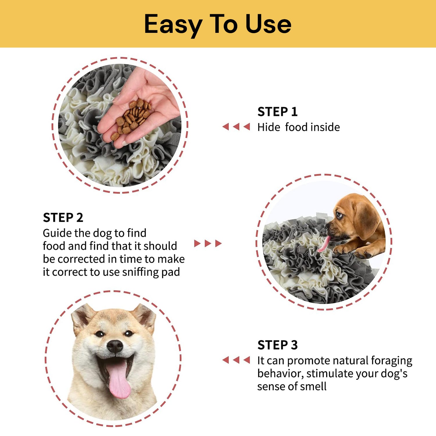 Snuffle Mat for Dogs Stimulates Natural Foraging Instincts: Engage your dog's nose & brain with this interactive snuffle mat! Durable fiber layers mimic natural hunting grounds, perfect for small and large breeds to develop foraging skills while slowing fast eaters.