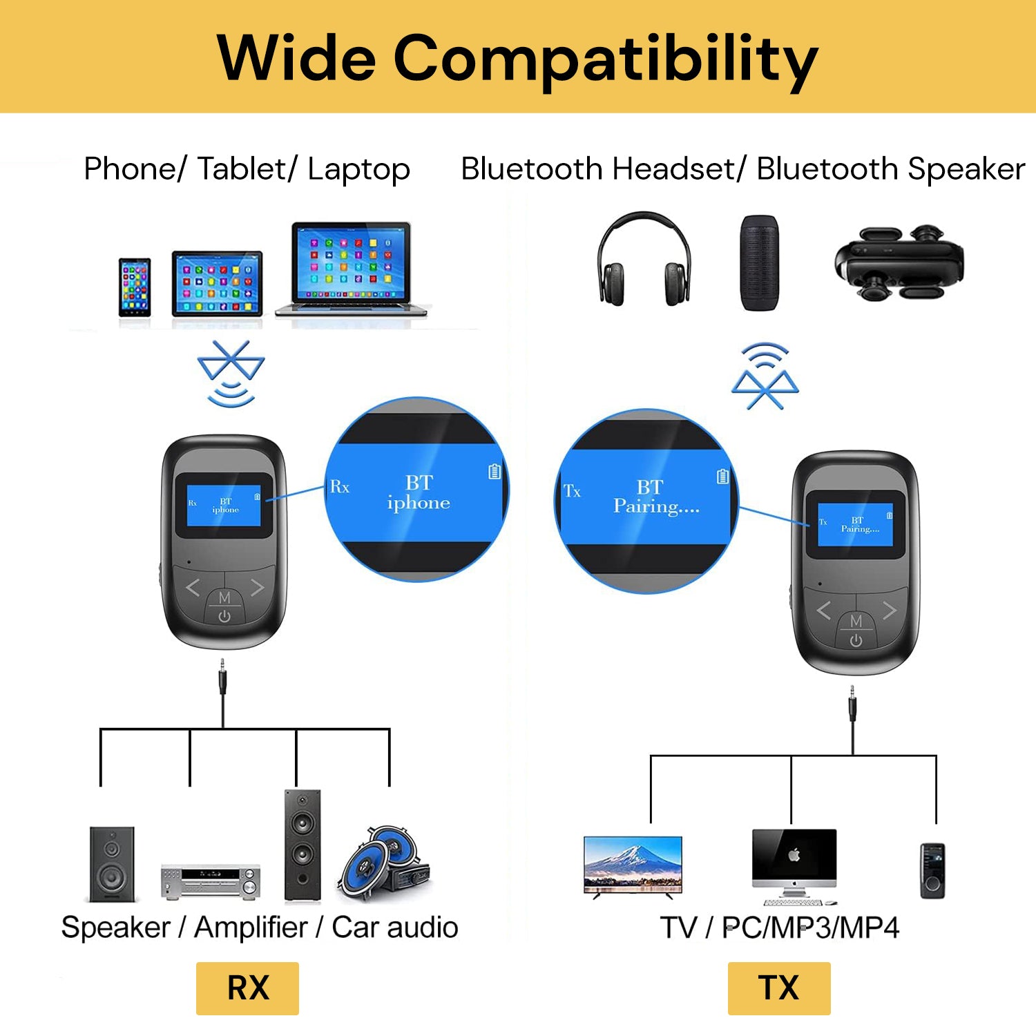 Wide Compatibility: The adapter can be used for almost all digital products with input/output (3.5MM interface), just connect the to the input/output. Enjoy the flexibility to connect to any device, whether your phone, laptop, or TV, and experience the ultimate convenience of wireless audio.