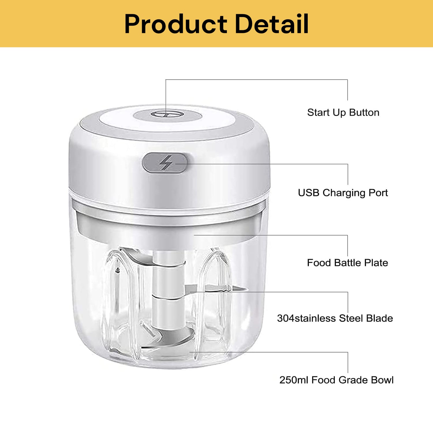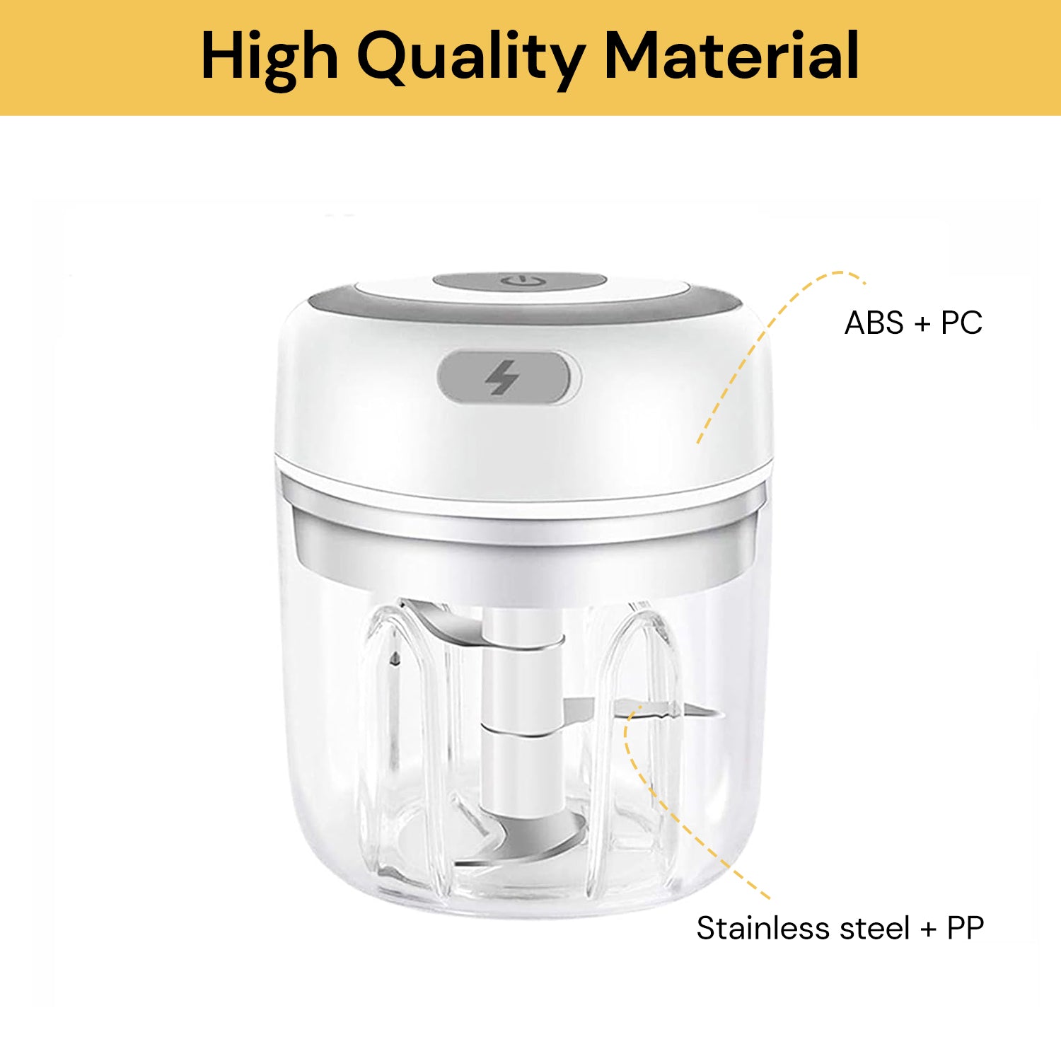 High Quality Material: The electric mini garlic shredder is made of high quality ABS, PP and PC material. It can hold food safely and is harmless to you and your family. Robust built-in stainless steel sharp blade, with an angle of 45 degrees, resistant to high temperatures and corrosion resistance.