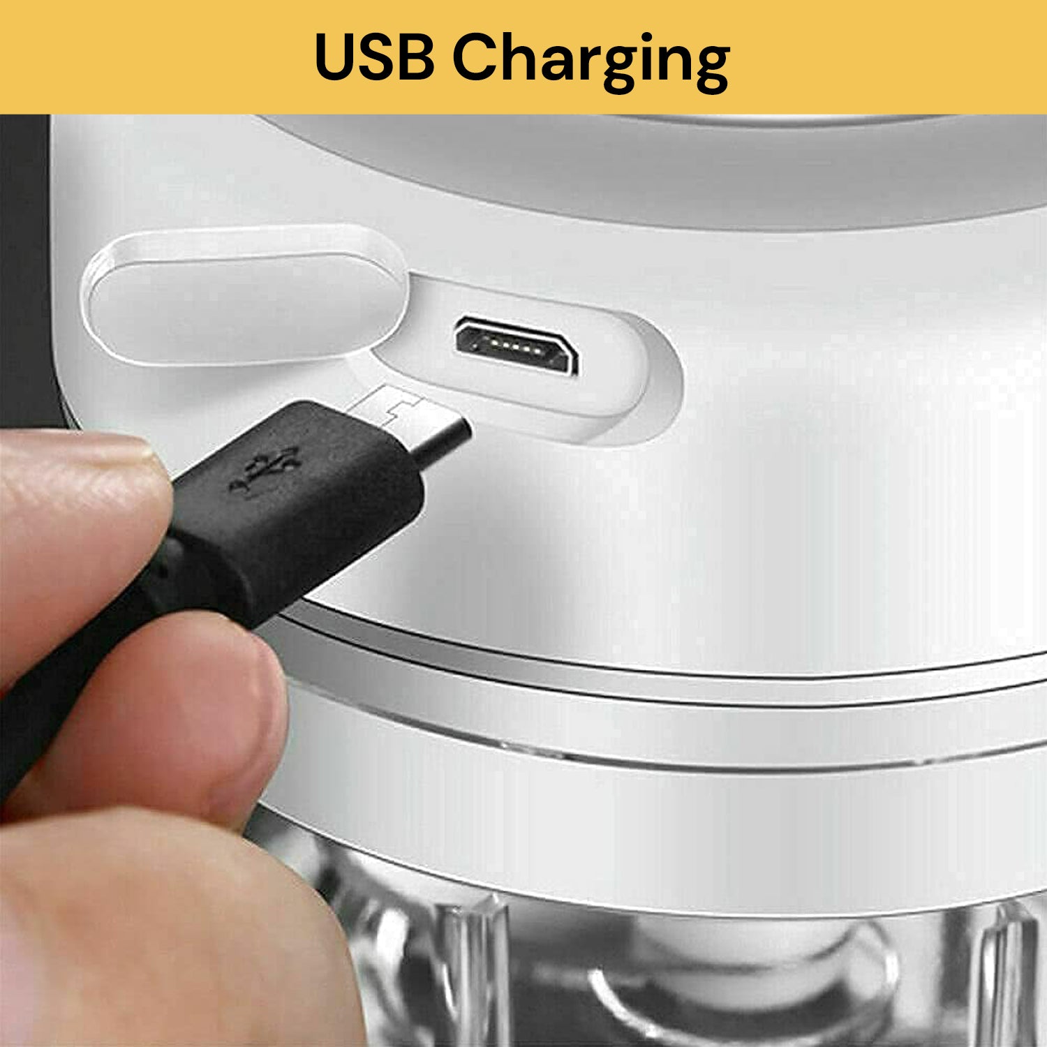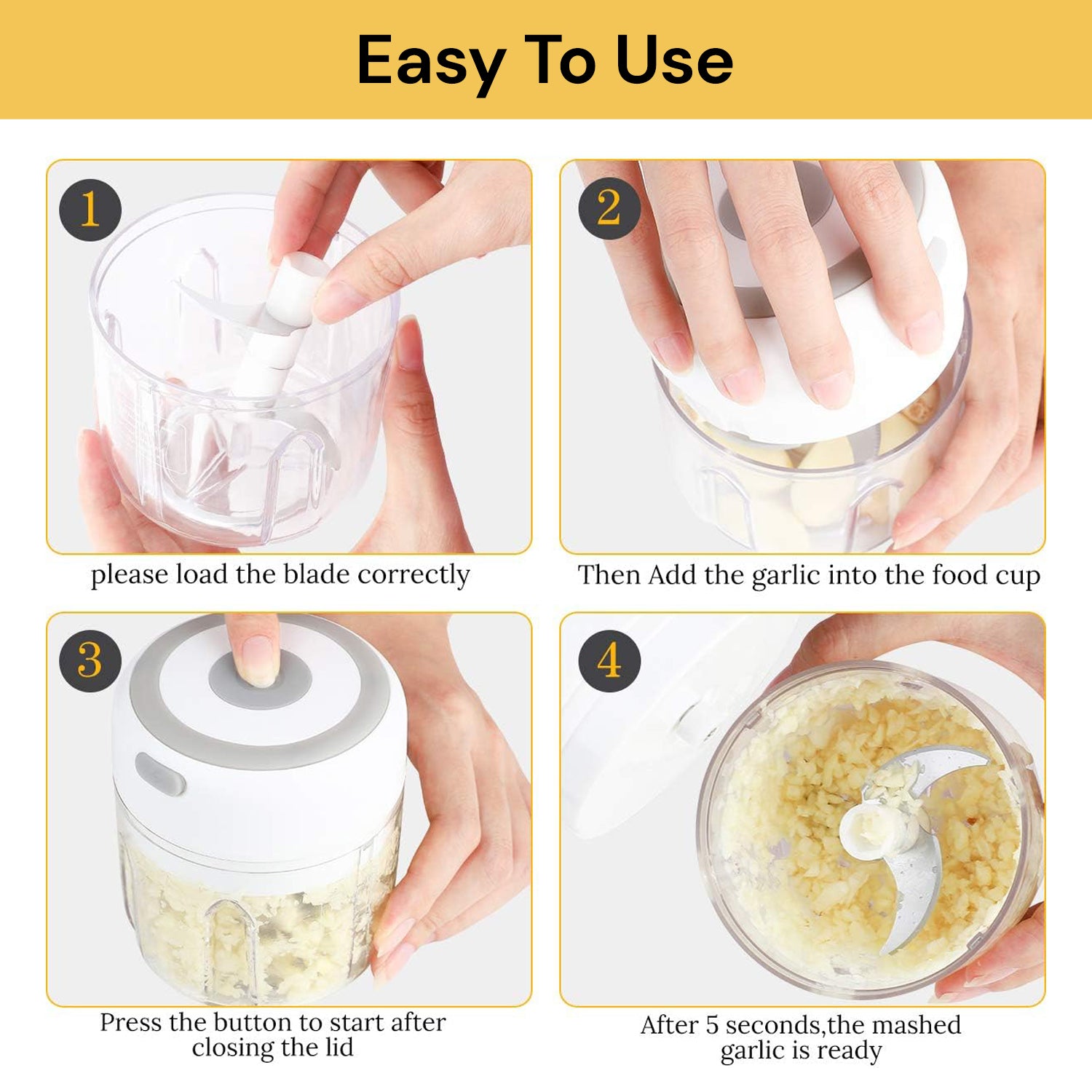 USB Charging: The multifunctional USB chopper is equipped with a built-in rechargeable high-quality battery, 1200 mAh high-capacity battery and long battery life. You only need to charge 3 hours and you can enjoy more than a month of wireless heels. It can be charged in many ways. Just press the top button for a few seconds to complete the work. If the food is too large, first cut it into small pieces.